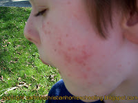 Symptoms:Part of my is dreading going in because of the last time we were at the doctors when he was sick. The nurse then told me "You homeschool so how did he get sick?" I can almost hear it now "You homeschool so how did he get chickenpox?" (If they confirm that it is indeed chickenpox).
